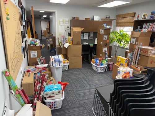 Every year I think our community can't be any more generous and giving than the year before and every year I am humbled by the outpouring of support from so many. These pictures are just a small part of what we were able to accomplish this year. I took over the entire administration office for this entire month and Mr. Roeder was convinced for a while that I was trying to trap him in his office.