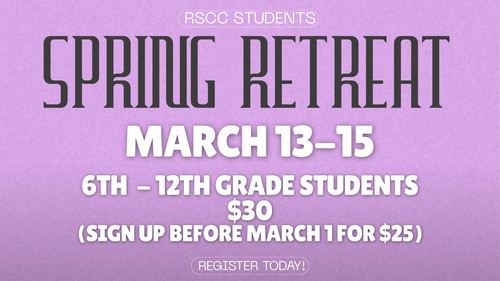 Join us March 13-15 for our Student Spring Retreat at Rising Sun Church of Christ! This weekend is designed for all 6th–12th grade students and will be packed with fun, games, great food, powerful worship, and opportunities to grow closer to Jesus.